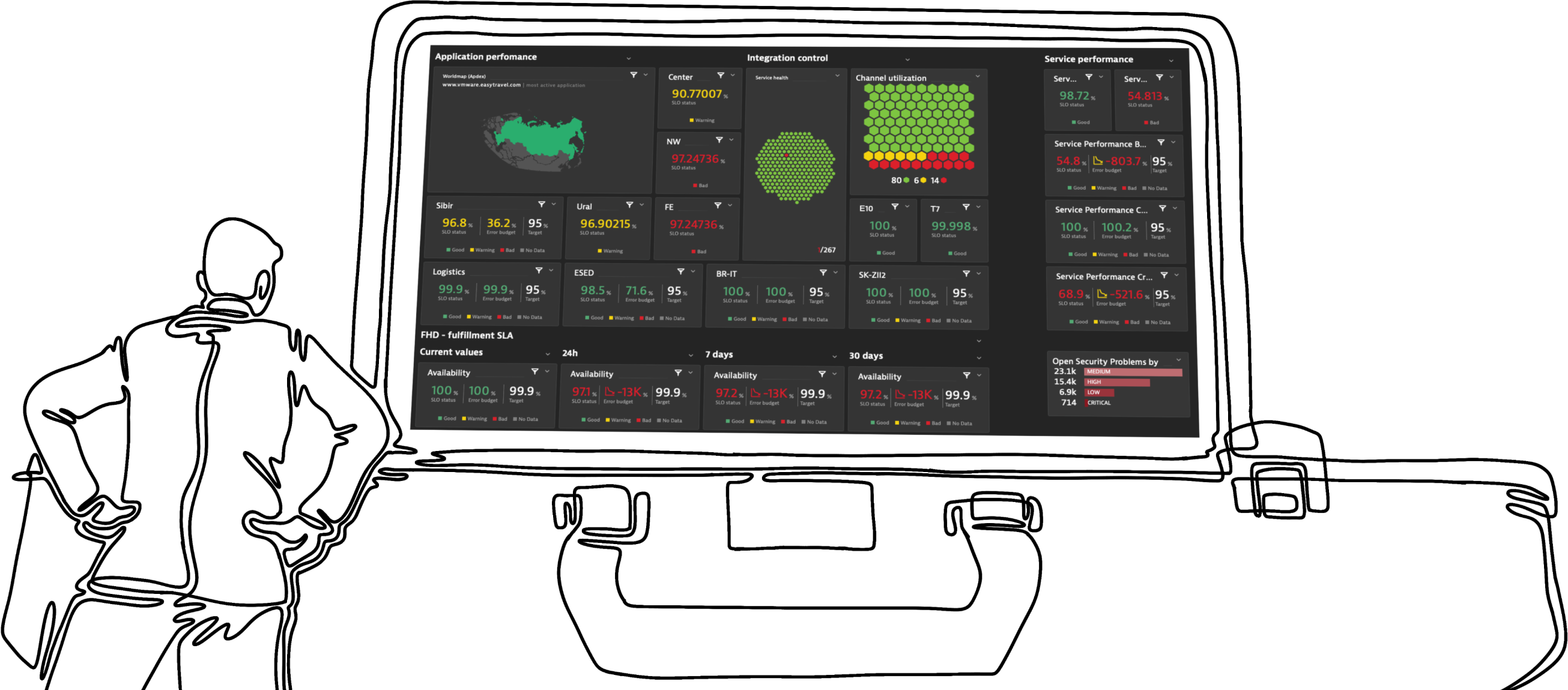 DESK helps transportation companies to monitor and control the performance of their applications. It is capable to monitor even most sophisticated infrastructures comprising various advanced technologies and located in dozens of datacenters across Russia. This system monitors real users based on their geography. The monitoring is performed at different service delivery levels (frontend, application server, database, middleware, etc.) ensuring in-depth transaction analysis for various data protocols, including HTTP/HTTPS, MS SQL, Oracle, SAP, WebSphere MQ, Citrix, XML, VoIP, and others.