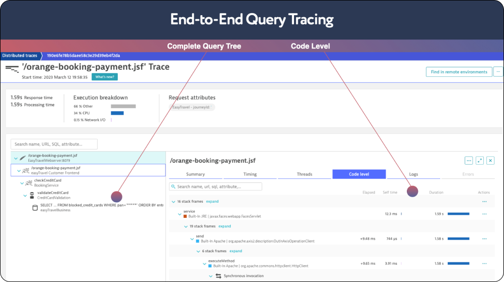 as a logical sequence of calls with code-level drilldown