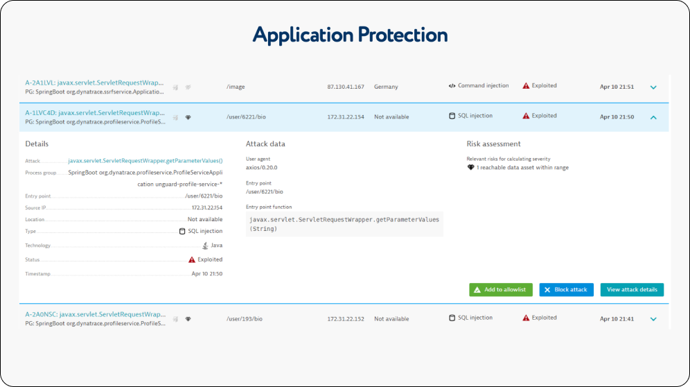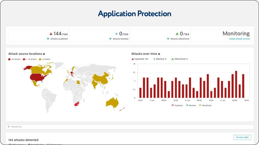 Blocked - i.e. the attack has been blocked. This happens if the blocking mode is engaged. Allowlist - The attacks added to the White List.